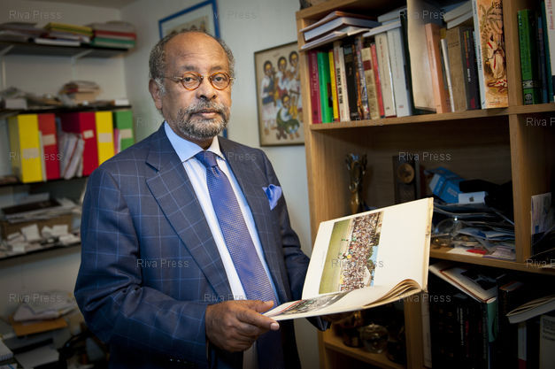 Légende : 07/10/2011 - PARIS, France - Le journaliste et ancien directeur de la cooperation internationale du CIO Fekrou Kidane pose dans son domicile parisien. PHOTO Vincent Boisot/Riva Press