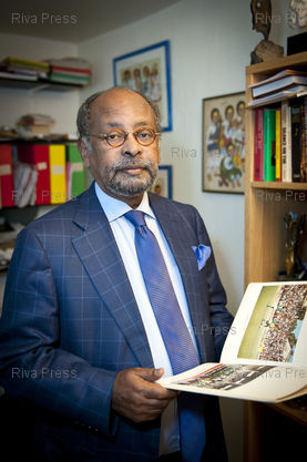 Légende : 07/10/2011 - PARIS, France - Le journaliste et ancien directeur de la cooperation internationale du CIO Fekrou Kidane pose dans son domicile parisien. PHOTO Vincent Boisot/Riva Press