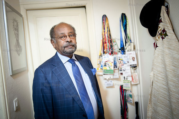 Légende : 07/10/2011 - PARIS, France - Le journaliste et ancien directeur de la cooperation internationale du CIO Fekrou Kidane pose dans son domicile parisien. PHOTO Vincent Boisot/Riva Press