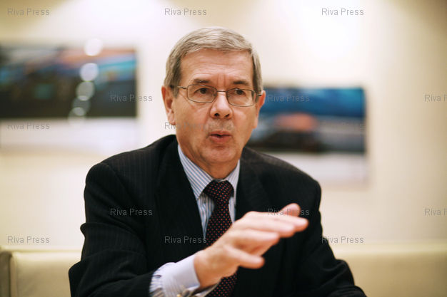Légende : Philippe Varin, PDG de PSA, pose dans son bureau. Paris, FRANCE-14/02/2012