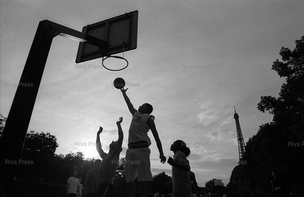 Mots-clés : 2004, Basket, basket de rue, basketball, Champ de Mars, dunk, ete, Illustration, jeu, joueur, loisir, noir et blanc, panier, Paris, player, playground, sport, sportif, streetbasket, terrain de jeu, Tour Eiffel