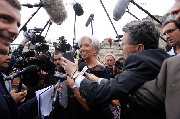 Mots-clés : 2011, Christine Lagarde, Conseil des Ministres, Elysée, Journalistes, Lagarde, Ministres, Paris, perches, presse