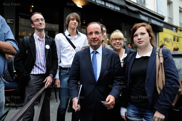 Francois Hollande après avoir bu une bière avec des jeunes au bar du coin - Photo © Lionel Préau +33 (0)6 68 12 83 77