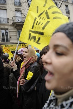 Légende : Manifestation a l'occasion de la fin de la treve hivernale des expulsions le 15 mars, pour reclamer l'arret des expulsions, la production de logements sociaux, et denoncer le logement cher - Paris - 12/03/2011 - Photo © Lionel Préau +33 (0)6 68 12 83 77