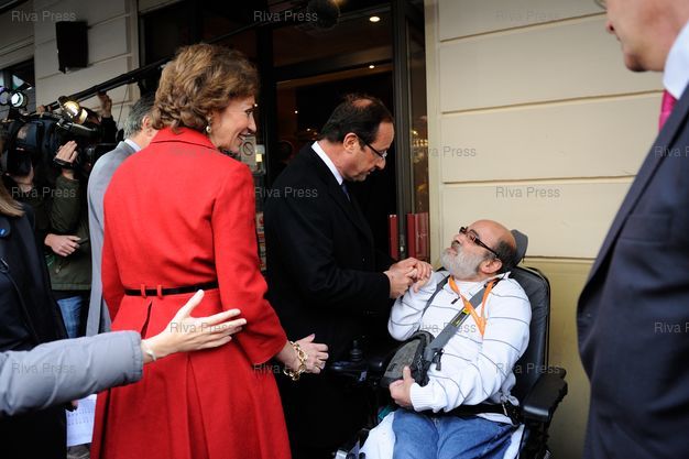 François Hollande et Marisol Touraine auprès d'un handicapé - Photo © Lionel Préau +33 (0)6 68 12 83 77