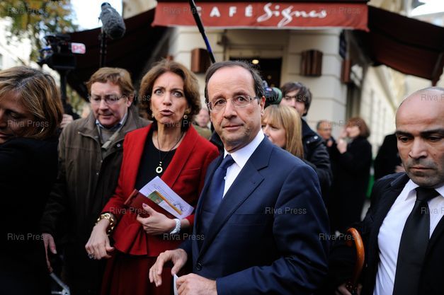 François Hollande sort du café Signes, accompagné de Marisol Touraine - Photo © Lionel Préau +33 (0)6 68 12 83 77