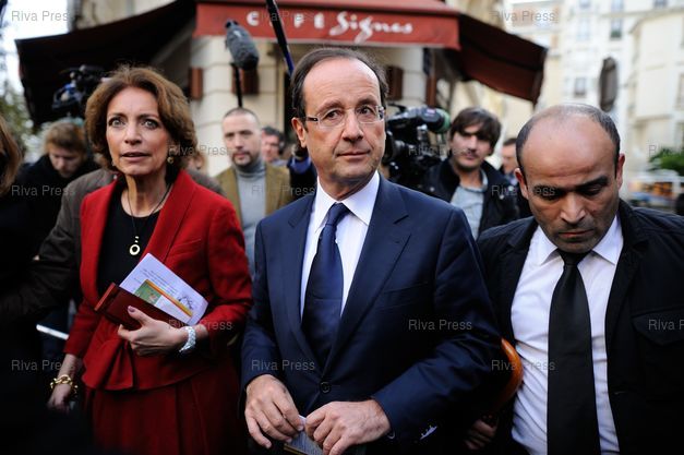 François Hollande sort du café Signes, accompagné de Marisol Touraine - Photo © Lionel Préau +33 (0)6 68 12 83 77
