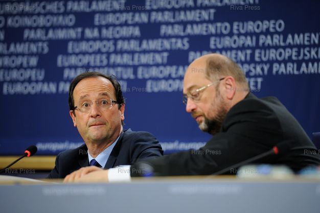 Conférence de presse de François Hollande avec Martin Schulz, président du groupe S&D, au Parlement Européen - Photo © Lionel Préau +33 (0)6 68 12 83 77