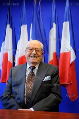 Légende : Jean-Marie Le Pen fait le point sur l'avant Congres, la crise monetaire et l'actualite lors d'une conference de presse au siege du Front National.