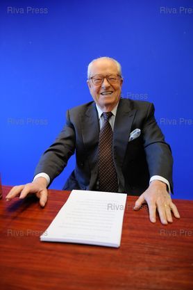 Légende : Jean-Marie Le Pen fait le point sur l'avant Congres, la crise monetaire et l'actualite lors d'une conference de presse au siege du Front National.