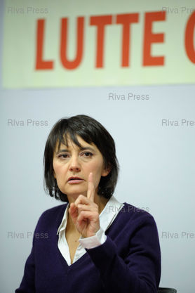 Légende : Lutte Ouvriere designe Nathalie Arthaud comme candidate pour la presidentielle de 2012 lors d'une conference de presse - Eurosites George V