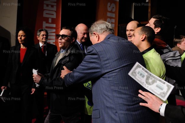 Charles Pasqua repousse les perturbateurs venus apostropher les élus sur l'utilisation de l'argent - Photo © Lionel Préau +33 (0)6 68 12 83 77