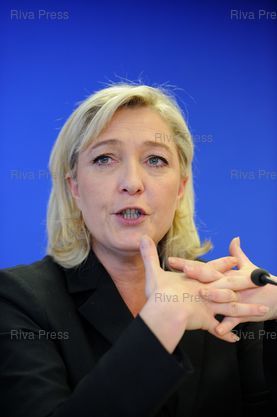 Légende : Conférence de presse de Marine Le Pen sur le chiffrage du Projet pour l'élection présidentielle 2012.