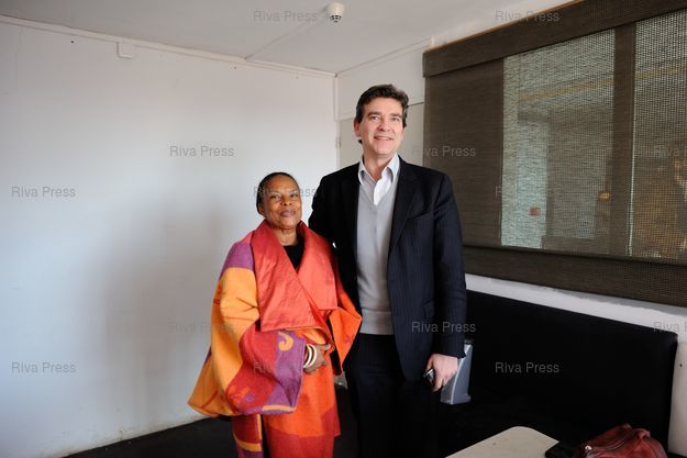 Christiane Taubira et Arnaud Montebourg posent dans un bureau à l'étage avant le meeting - Photo © Lionel Préau +33 (0)6 68 12 83 77