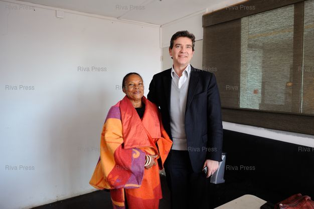 Christiane Taubira et Arnaud Montebourg posent dans un bureau à l'étage avant le meeting - Photo © Lionel Préau +33 (0)6 68 12 83 77