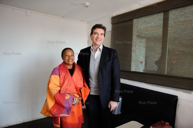 Christiane Taubira et Arnaud Montebourg posent dans un bureau à l'étage avant le meeting - Photo © Lionel Préau +33 (0)6 68 12 83 77