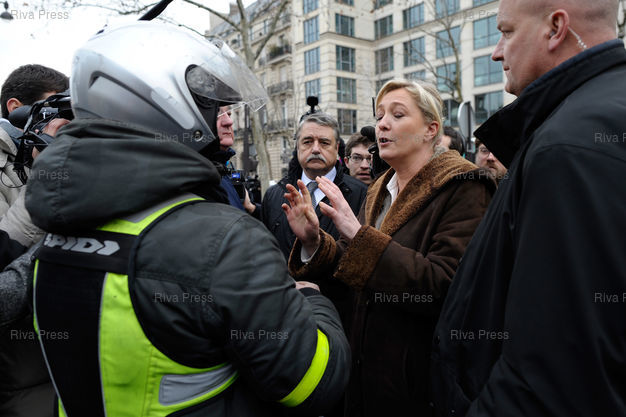 Un motocycliste vient échanger avec Marine Le Pen - Photo © Lionel Préau +33 (0)6 68 12 83 77