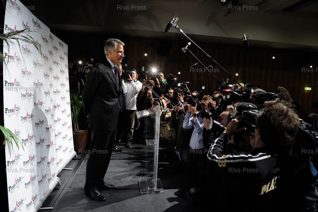 Légende : Dominique de Villepin annonce lors d'une conférence de presse au Press Club la création d'un nouveau parti politique " République Solidaire " le 19 juin prochain.