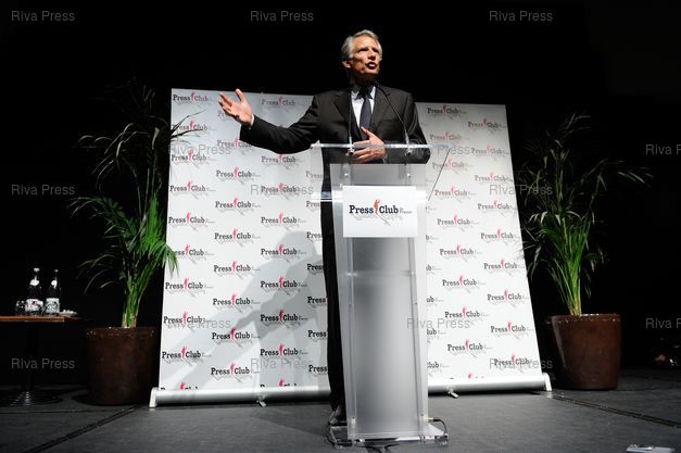 Légende : Dominique de Villepin annonce lors d'une conférence de presse au Press Club la création d'un nouveau parti politique " République Solidaire " le 19 juin prochain.