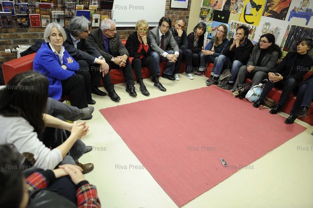 Légende : Eva Joly, candidate d'Europe Ecologie-Les Verts à la présidentielle, visite l'école Saint-Merri-Renard - Paris - 13/04/2012 - Photo © Lionel Préau +33 (0)6 68 12 83 77