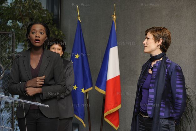 Légende : Passation de pouvoir entre Rama Yade et Chantal Jouanno au Ministere des Sports, en presence de Roselyne Bachelot-Narquin.