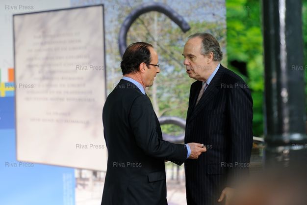 François Hollande échange avec Frédéric Mitterrand à l'issue de la cérémonie - Photo © Lionel Préau +33 (0)6 68 12 83 77