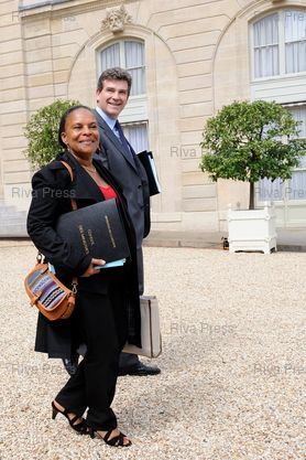 Mots-clés : 2012, Arnaud Montebourg, Christiane Taubira, Conseil des Ministres, Elysée, Ministre, Montebourg, Paris, taubira