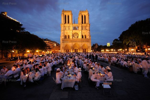 Mots-clés : 2012, blanc, cathedrale, Dîner, diner en blanc, dinner in white, Notre Dame, Paris, parvis, white dinner