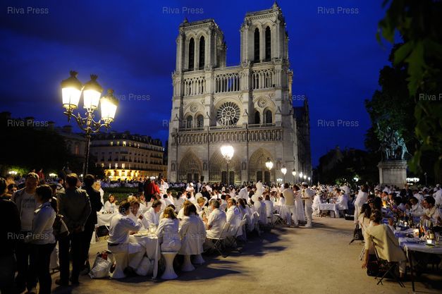 Mots-clés : 2012, blanc, cathedrale, Dîner, diner en blanc, dinner in white, Notre Dame, Paris, parvis, white dinner