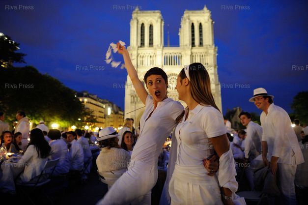 Mots-clés : 2012, blanc, cathedrale, Dîner, diner en blanc, dinner in white, Notre Dame, Paris, parvis, white dinner