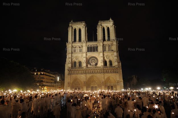 Mots-clés : 2012, blanc, cathedrale, Dîner, diner en blanc, dinner in white, Notre Dame, Paris, parvis, white dinner