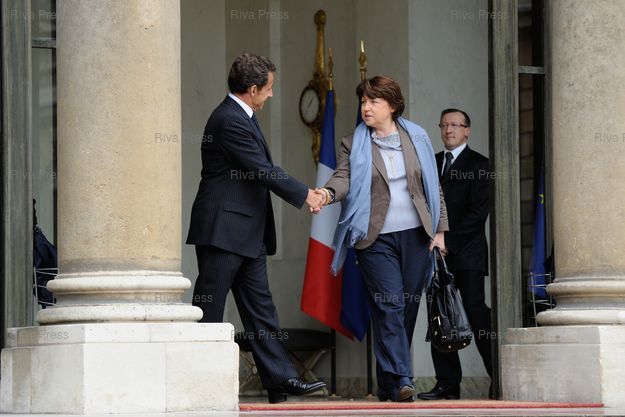 Nicolas Sarkozy raccompagne Martine Aubry après leur entrevue - Photo © Lionel Préau +33 (0)6 68 12 83 77