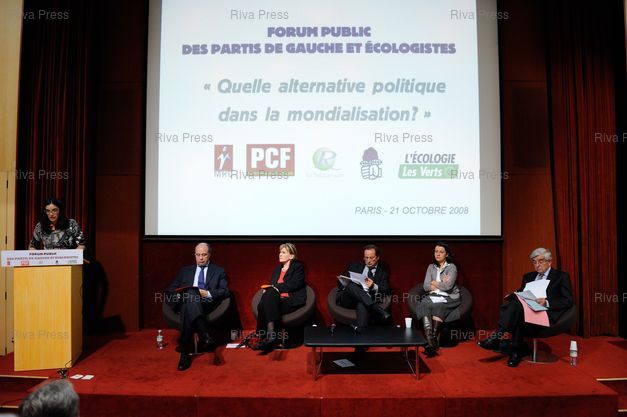 Légende : Premier forum public des partis de gauche et ecologistes (MRC, PCF, PRG, PS, Les Verts) - "Quelle alternative politique dans la mondialisation ?".