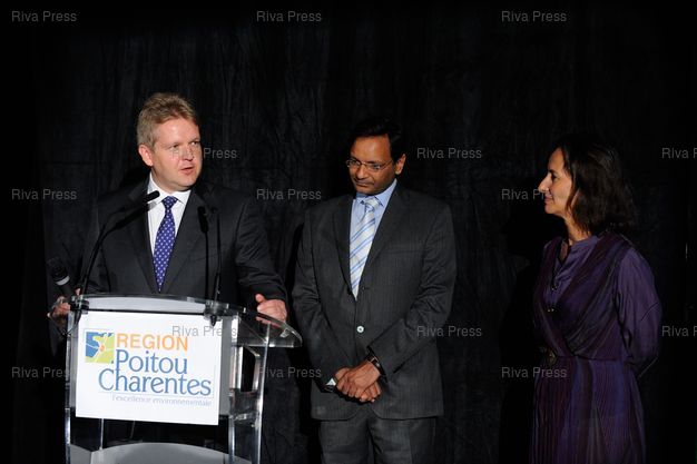 Discours du président du directoire du constructeur automobile Heuliez, Paul Queveau, avec à ses cÙtés le président du directoire d'Heuliez, Ajay Singh, et Ségolène Royal - Photo © Lionel Préau +33 (0)6 68 12 83 77