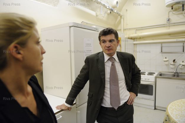Légende : Benoist Apparu, nouveau Secretaire d'Etat au Logement, visite le centre d'hebergement d'urgence Emmaus et l'association Les Enfants du Canal boulevard de l'Observatoire - Paris - 04/08/2009 - Photo © Lionel Préau +33 (0)6 68 12 83 77