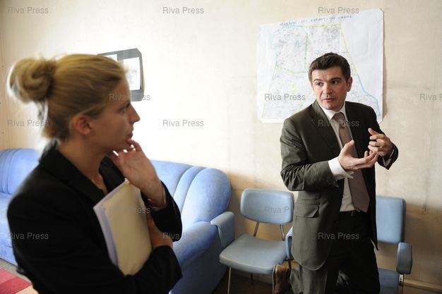 Légende : Benoist Apparu, nouveau Secretaire d'Etat au Logement, visite le centre d'hebergement d'urgence Emmaus et l'association Les Enfants du Canal boulevard de l'Observatoire - Paris - 04/08/2009 - Photo © Lionel Préau +33 (0)6 68 12 83 77