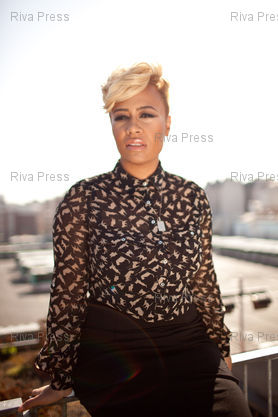 Légende : Emelie Sande pose au siege de EMI. Paris, FRANCE-28/03/2012