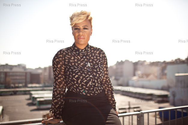 Légende : Emelie Sande pose au siege de EMI. Paris, FRANCE-28/03/2012