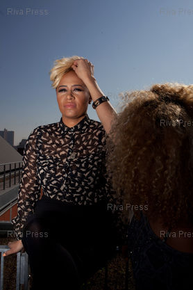 Légende : Emelie Sande pose au siege de EMI. Paris, FRANCE-28/03/2012
