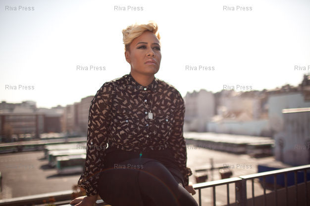 Légende : Emelie Sande pose au siege de EMI. Paris, FRANCE-28/03/2012