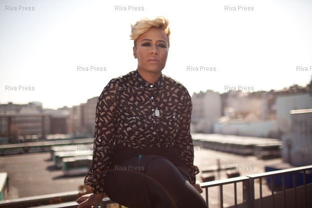Légende : Emelie Sande pose au siege de EMI. Paris, FRANCE-28/03/2012