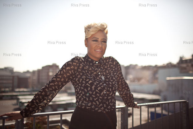 Légende : Emelie Sande pose au siege de EMI. Paris, FRANCE-28/03/2012