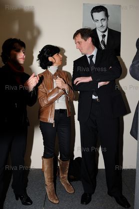 Rachida Dati et Jerome Chartier échangent devant un portrait de Nicolas Sarkozy - Photo © Lionel Préau +33 (0)6 68 12 83 77
