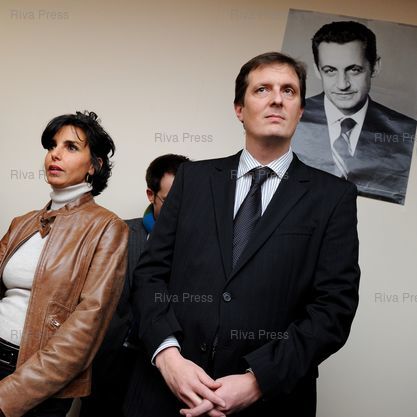 Rachida Dati et Jerome Chartier devant un portrait de Nicolas Sarkozy - Photo © Lionel Préau +33 (0)6 68 12 83 77
