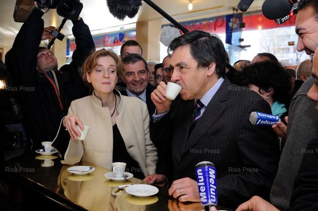 Nathalie Kosciusko-Morizet et François Fillon prennent un café dans une brasserie - Photo © Lionel Préau +33 (0)6 68 12 83 77