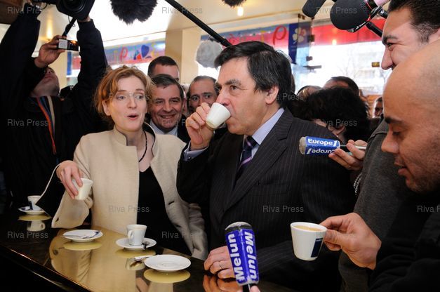 Nathalie Kosciusko-Morizet et François Fillon prennent un café dans une brasserie - Photo © Lionel Préau +33 (0)6 68 12 83 77