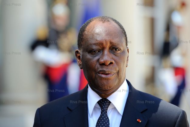 Alassane Ouattara vient s'exprimer devant la presse après son entretien avec le président français - Photo © Lionel Préau +33 (0)6 68 12 83 77
