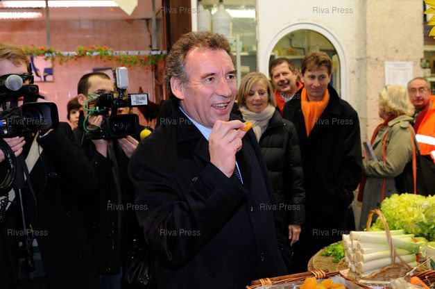 Légende : François Bayrou vient soutenir les candidats du Mouvement Démocrate (Modem) aux élections municipales.
