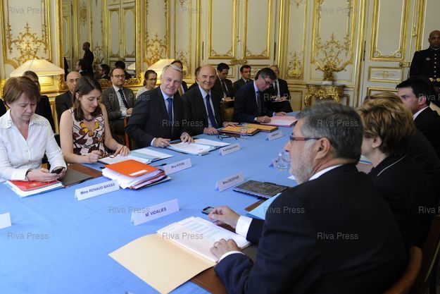 Légende : Réunion de ministres autour du premier ministre Jean-Marc Ayrault sur la réforme de l'action publique, la décentralisation et la modernisation de l'Etat.