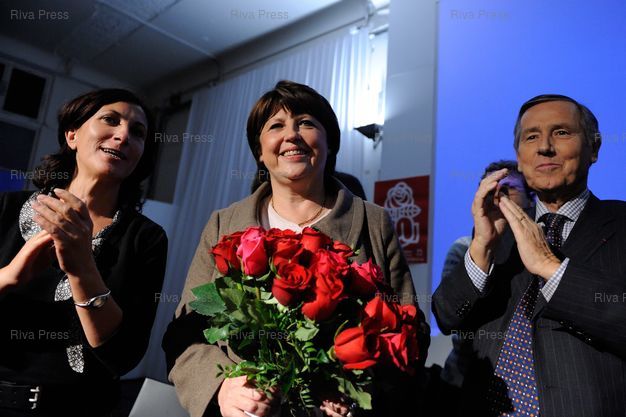 Mots-clés : 2008, Aubry, bouquet, Martine Aubry, Meeting, motion, Parti socialiste, PS, roses, roses rouges, Sandrine Mazetier
